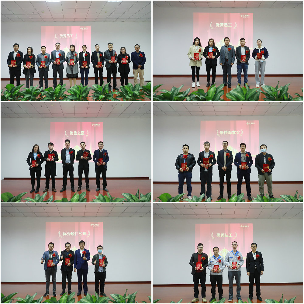 會(huì)議現(xiàn)場(chǎng)公布了“優(yōu)秀員工”獎(jiǎng)、“銷售之星”獎(jiǎng)、“最佳降本”獎(jiǎng)、“優(yōu)秀項(xiàng)目經(jīng)理”獎(jiǎng)、“優(yōu)秀技工”獎(jiǎng)、“優(yōu)秀科技工作者”獎(jiǎng)、“最佳質(zhì)量”獎(jiǎng)、“優(yōu)秀部門”獎(jiǎng)、“優(yōu)秀總經(jīng)理”獎(jiǎng)的獲獎(jiǎng)名單,這些杰出的部門和個(gè)人,為公司長(zhǎng)遠(yuǎn)發(fā)展做出突出貢獻(xiàn),在全場(chǎng)熱烈的掌聲中被授予殊榮。