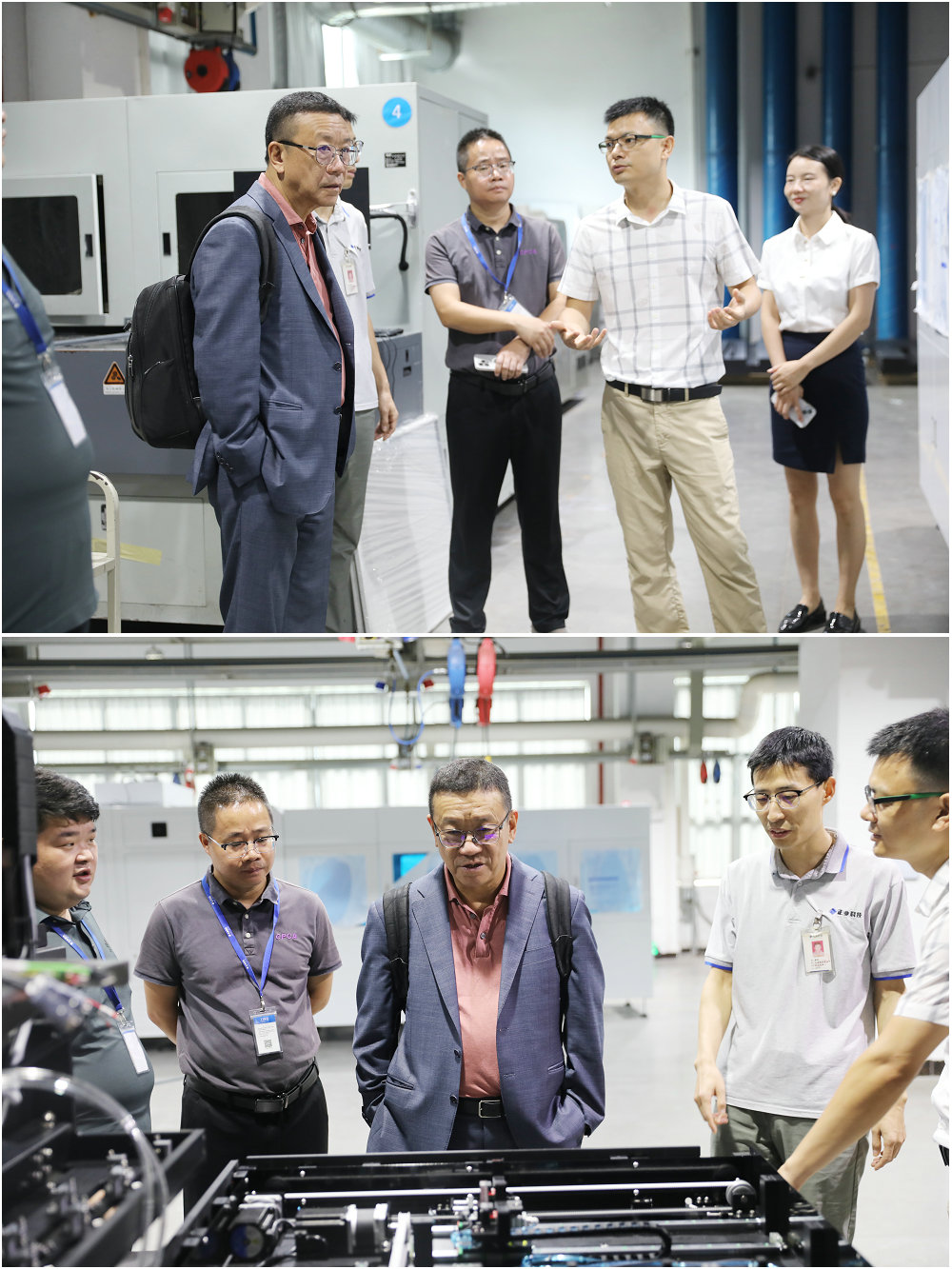 接著,姜旭高博士參觀了公司的設(shè)備車間,近距離了解我司的自動化和檢測設(shè)備相關(guān)情況,對正業(yè)科技整體的技術(shù)布局、設(shè)備的先進性、創(chuàng)新性等表示高度認同和贊揚。