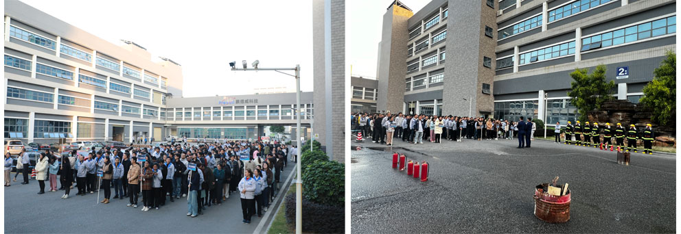 現(xiàn)場(chǎng)模擬園區(qū)4號(hào)樓2樓發(fā)生火災(zāi),響起消防警報(bào),我司義務(wù)消防員前往處置,因火勢(shì)過(guò)大,請(qǐng)求松山湖消防大隊(duì)支援。在我司義務(wù)消防員的指引下,全體職工按照既定的逃生路線,迅速有序地往大樓前的空曠地帶撤離集合,全體職工緊張有序、彎腰前行,整個(gè)過(guò)程無(wú)踩踏擁擠、摔傷等現(xiàn)象,疏散過(guò)程有序嚴(yán)謹(jǐn)。